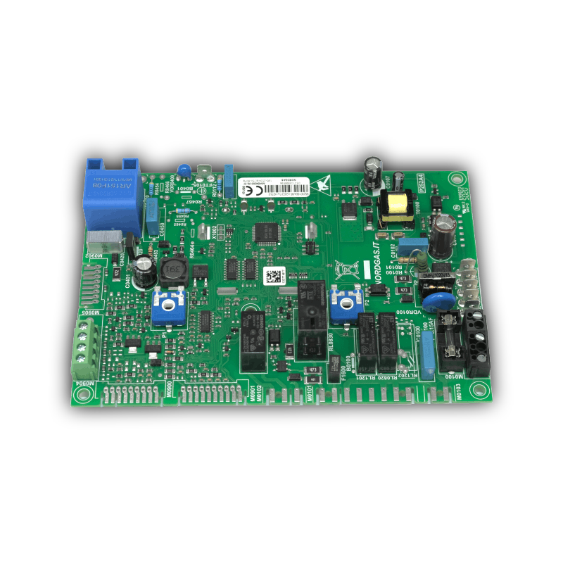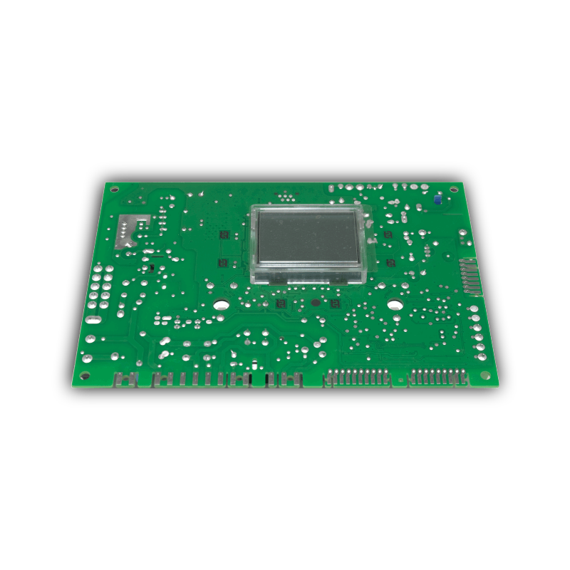 Основные функции - электропитание и управление работой котла в нормальной и аварийных ситуациях, взаимодействие и управление всеми электрическими и электронными компонентами котла. С помощью платы управления котлом осуществляются все операции по контролю процессами, управлению и отображению на жидкокристаллическом дисплее. Электронная плата - узловая деталь, к которой подключаются все датчики, защитные устройства и исполнительные механизмы. В газовых котлах используются платы управления с дисплеем Federica Bugatti (управление кнопками на панели котла), так и платы (управление осуществляется ручками регулировки.) С помощью платы управления котлом Федерика Бугатти осуществляются все операции по контролю процессами, управлению и отображению на жидкокристаллическом дисплее. Электронная плата управления Federica Bugatti находится на откидной панели котла под пластиковой крышкой. С помощью данной платы осуществляется взаимодействие и управление всеми электрическими и электронными компонентами котла. На конденсационных котлах электронная плата котла Федерика Бугатти может изменять частоту вращения вентилятора, в зависимости от режимов работы котла и конфигурации дымохода. Изменение частоты оборотов происходит за счет частотного регулирования и контролируется реле расхода дымовых газов, посредством электронной платы котла. Дисплей LCD демонстрирует состояние котла и сообщает информацию о его работе.